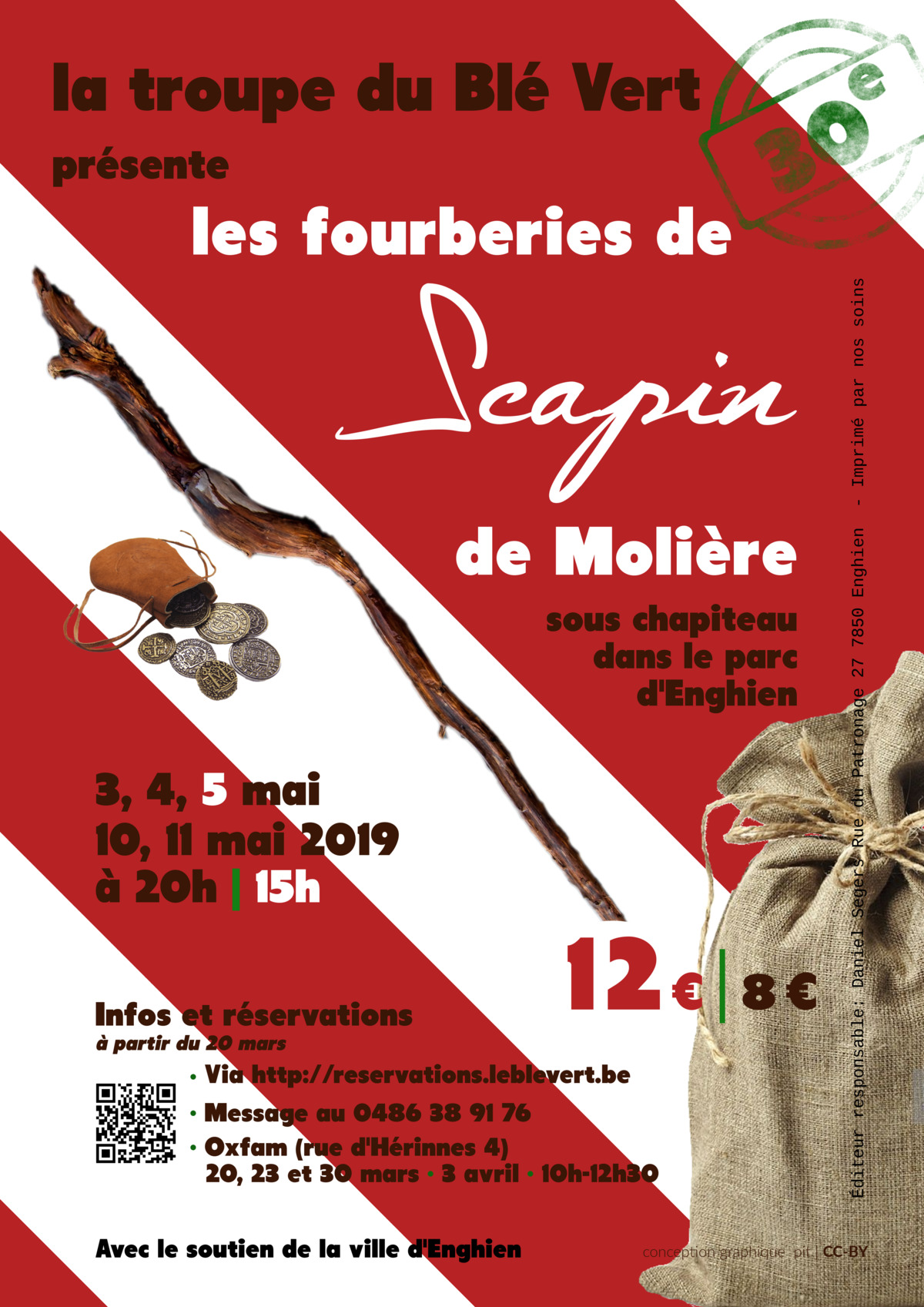 Des fils désobéissants, des pères intransigeants et avares, des situations complexes, un valet retors mais secourable... Le rire éclate et triomphe sans partage. Scapin est le personnage le plus intelligent de Molière, celui chez qui le plaisir d'imaginer est le plus spontané et le plus vif. Scapin est un philosophe sans illusion sur l'homme, mais son goût de vivre reste le plus fort et lui interdit le pessimisme (Christine Delmotte). Les accessoires utilisés pour faire rire sont simples : une bourse, un sac, un bâton...Distribution