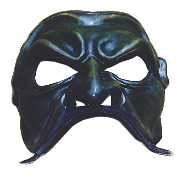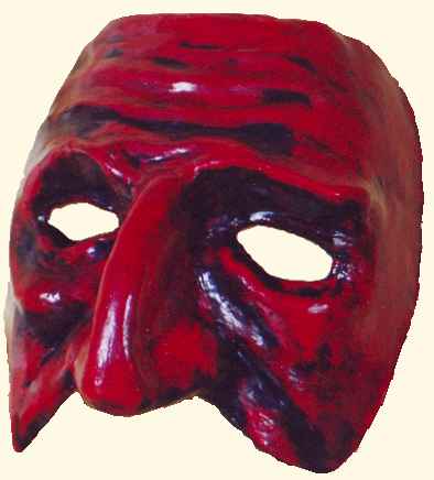 Arlecchino et Brighella les Serviteurs Fourbes. Arlecchino né... ne s'en souvient plus, descendant des Zanni (serviteurs Vénitiens balourds et ridicules), serviteur fourbe, roi des inventeurs de farces, fainéant, voleur et têtu, il est le philosophe de la bêtise, amoureux de Colombine, mais toujours prêt à courtiser un autre jupon. Il devait se transformer par la suite, dans les arlequinades, en un amoureux rêveur, vêtu d'un costume composé d'une multitude de petits losanges polychromes. Il sait tout faire, boire, manger, dormir, faire l'amour, sauf travailler.Masque de chat à moustaches, Costume en morceaux de tissus de différentes couleurs et son fameux bâton - Spatola.